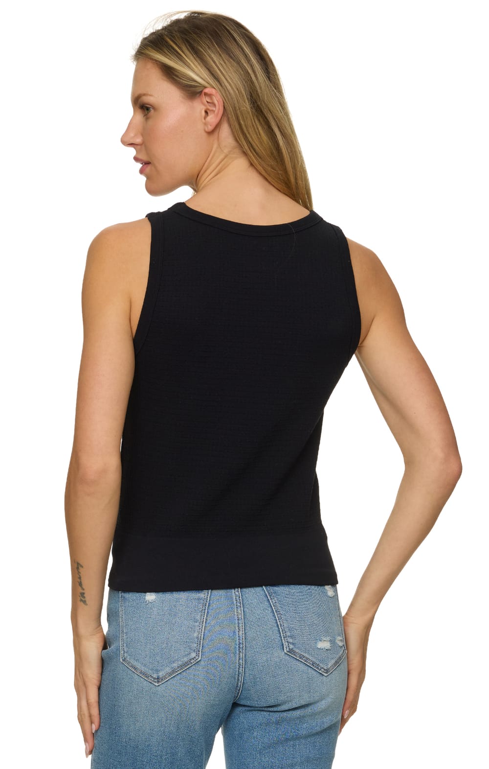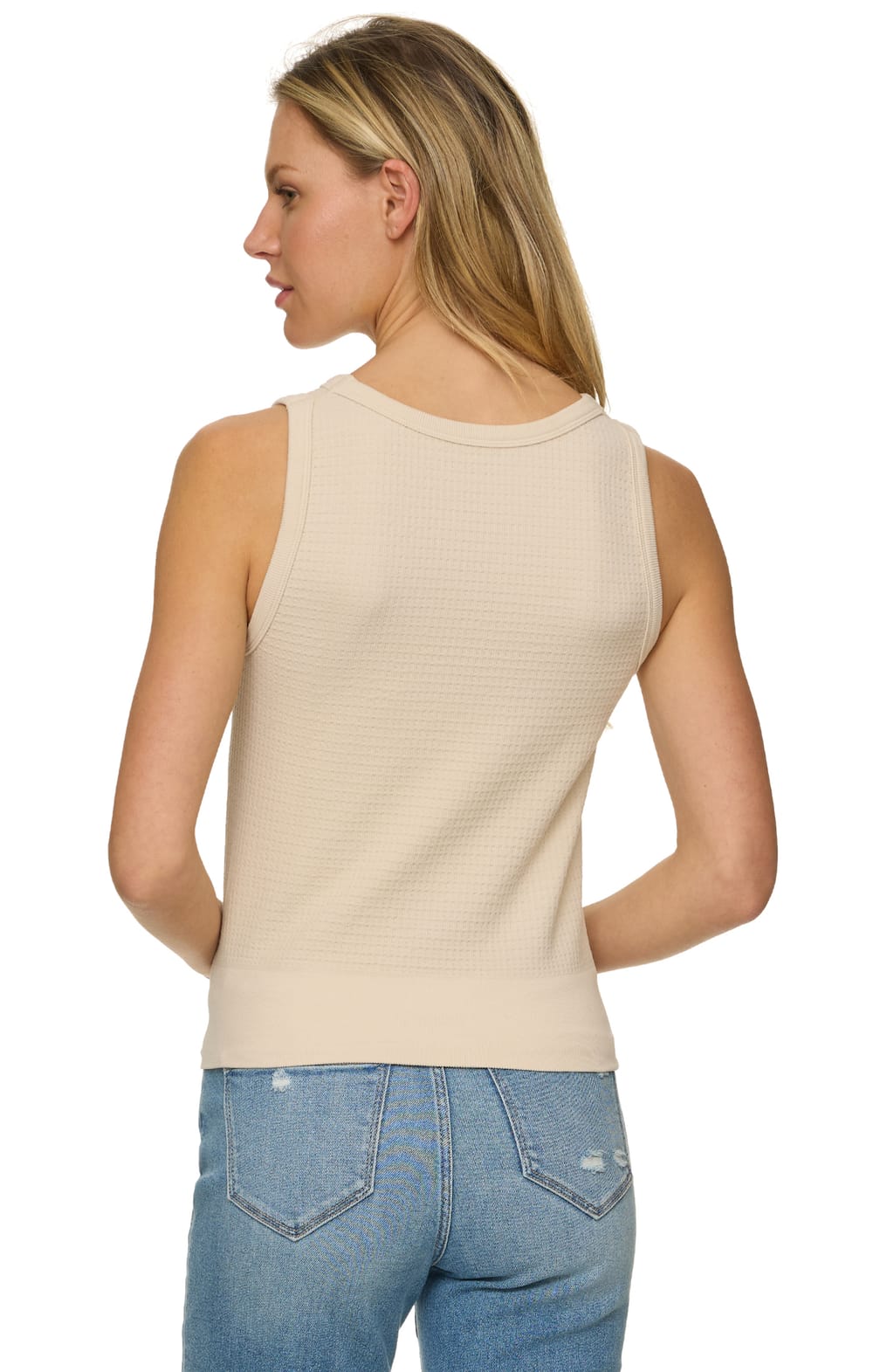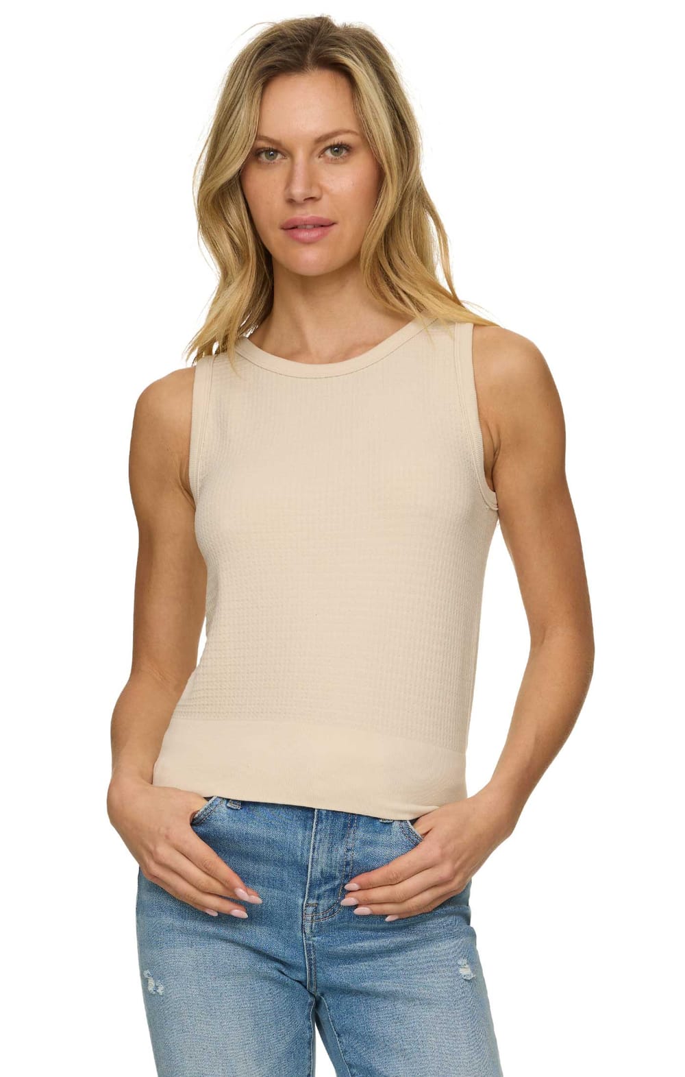 Take your look exactly where you want it to go with our Carolanne Seamless Tank. This soft and stretchy knit tank top has a figure-skimming fit, a high crew neckline, and a perfectly layer-able sleeveless bodice that ends at a straight ribbed hem.