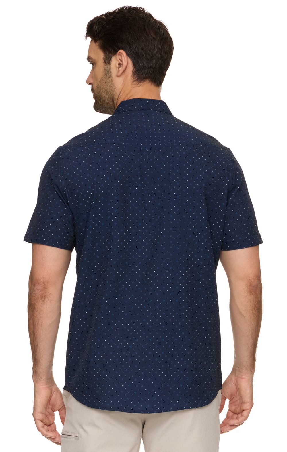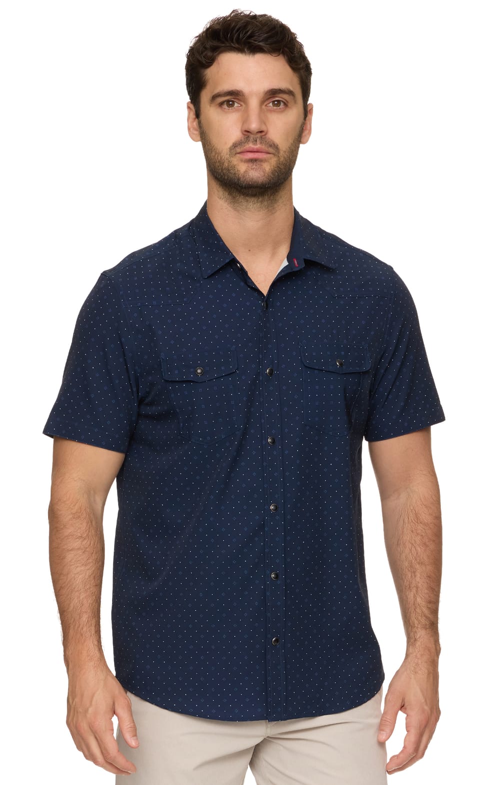 A comfortable snap-front shirt is a year-round favorite, but this one was designed specifically for warm-weather days. Made from a lightweight and breathable stretch performance fabric with western detailing that wicks away moisture and shields you from the sun’s harmful rays, our Drew UPF Performance Western Shirt works hard to keep you cool and comfortable – even on the hottest days. Contrast fabric inside collar stand, back yoke, front placket, and sleeve cuffs. Dual front flap pockets; pearlized snap closures. Hidden lens cleaner at the hem keeps optics clean. Tailored athletic fit.