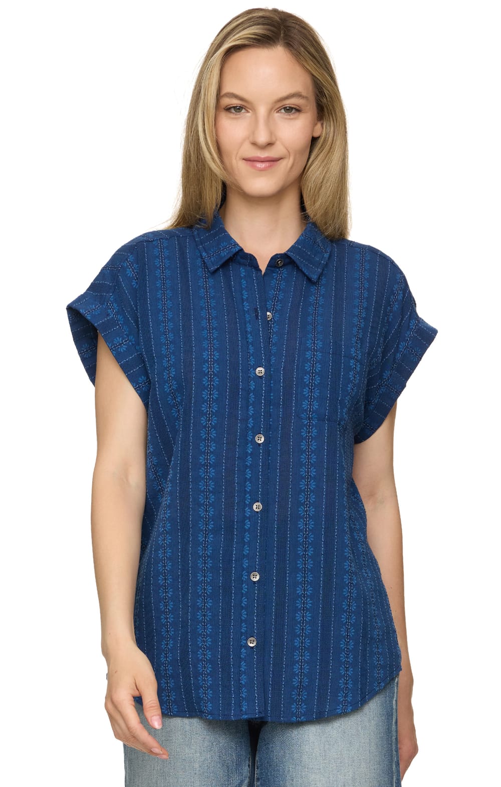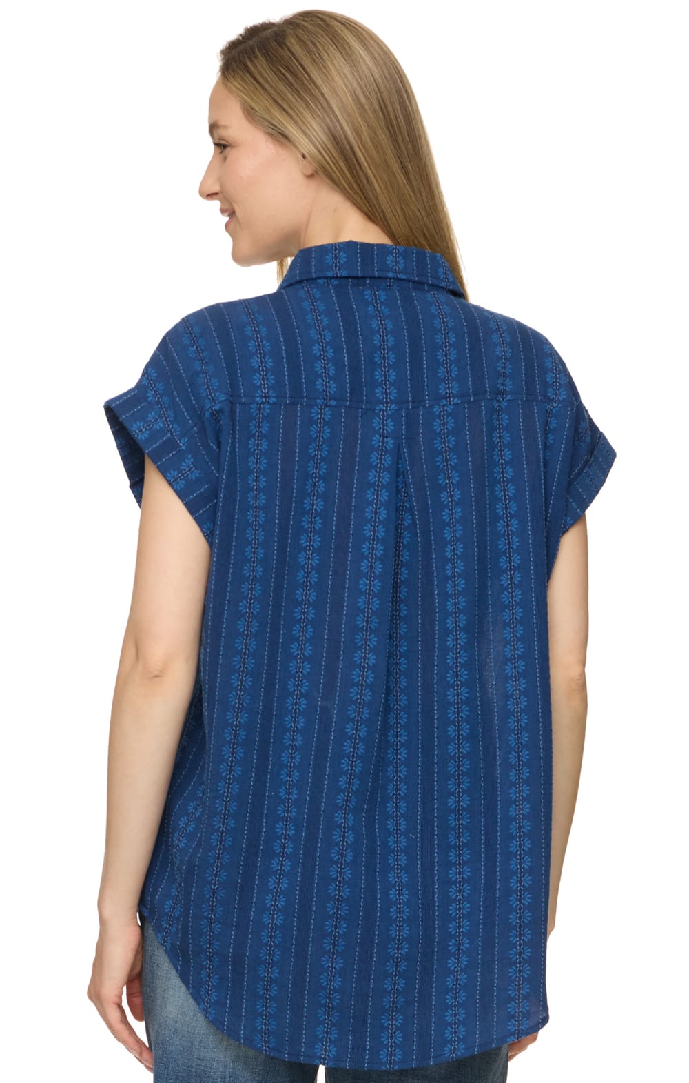 Nothing is better than a warm, spring day spent in our Faye Shirt. Light, cotton fabric composes this floral print top with a collar neckline framed by short, dolman sleeves and a relaxed, billowing body that ends in a subtle high-low hem. Full button down front placket; single patch chest pocket.