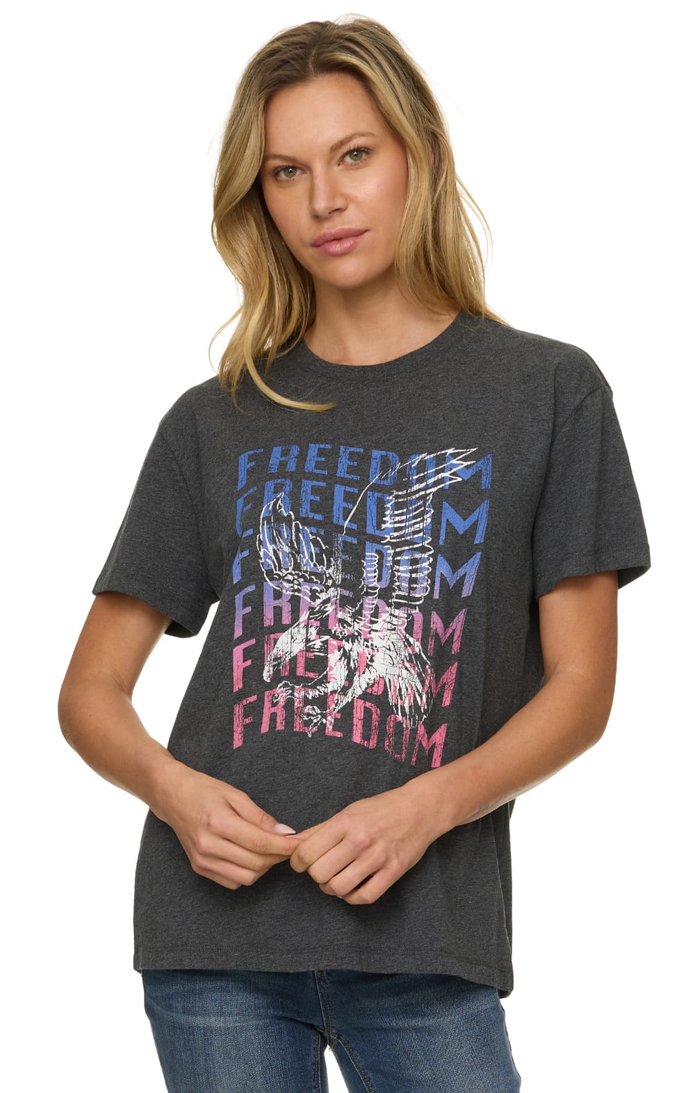 Take your cute and casual look to the next level with our Freedom Eagle Graphic Tee. Super soft and lightweight slub fabric shapes a crew neckline, short sleeves, and a relaxed silhouette that boasts all-original Threadgrit graphic artwork.