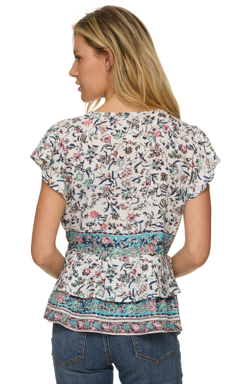 Our Harper Shirt is a must-have look this season, so make sure to get it before it’s gone! Woven cotton fabric is perfectly lightweight as it shapes a figure-flattering tiered bodice with a flirty deep V-neckline and a flouncy hem, all framed by short flutter sleeves. 5-button front placket with self-fabric loops.