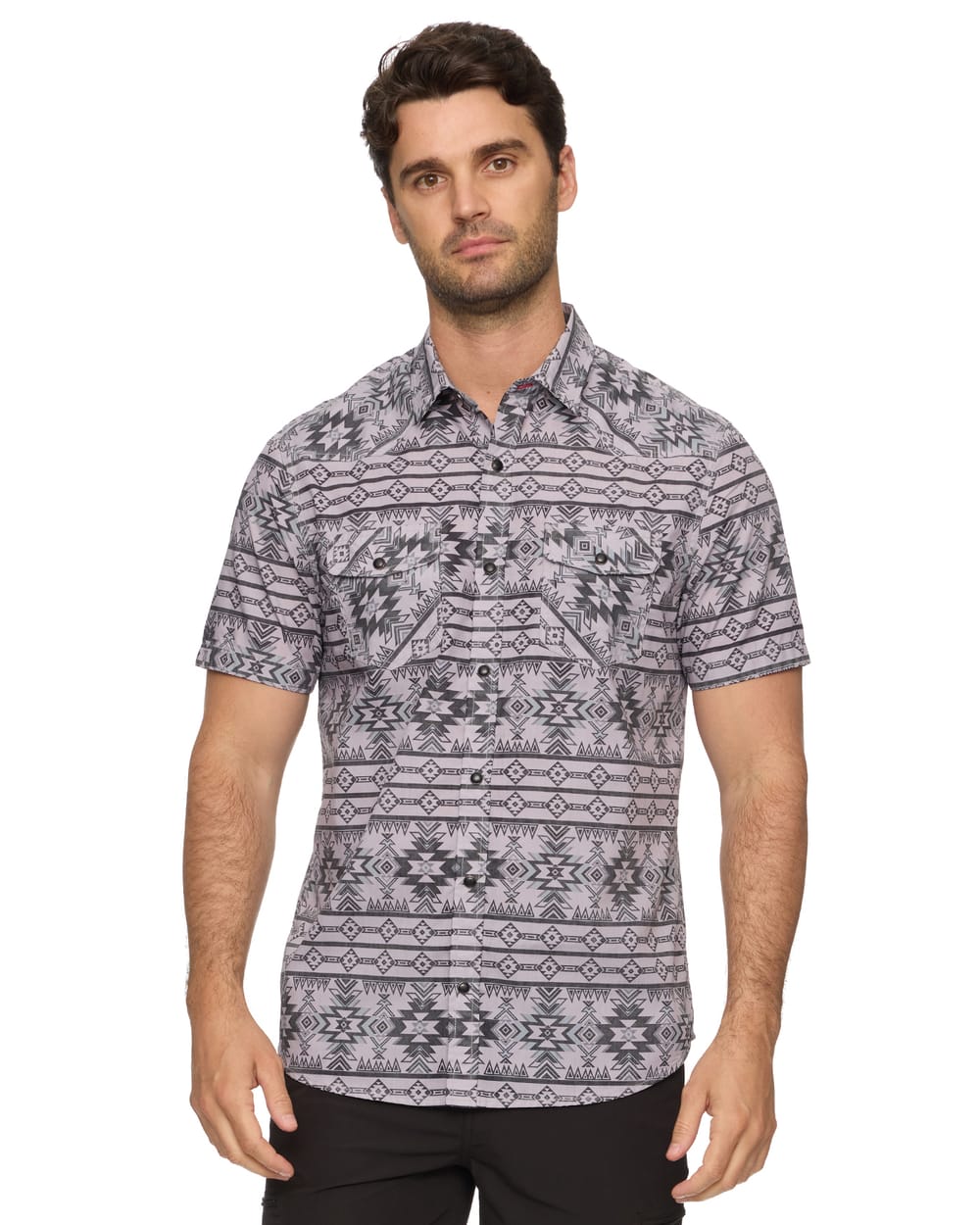 This vintage-inspired Western Shirt will quickly become your go-to for casual and comfortable everyday wear. Designed with all the classic style cues and specially washed for supreme softness, this short sleeve shirt fits and feels like a broken-in favorite from the first time you put it on. Contrast fabric inside collar stand, back yoke, and sleeve cuffs. Dual front chest pockets; pearlized snap closures. Tailored athletic fit.