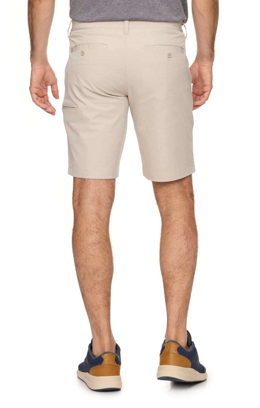 Our go anywhere, do-anything Nathan Performance Short is a must-have addition to any warm-weather wardrobe for its extreme versatility. Made from a lightweight and breathable stretch performance fabric that wicks away moisture and shields you from the sun’s harmful rays, you can move naturally through your round from the first tee to the 18th green and then head to the clubhouse feeling ready for whatever comes next. Regular rise; straight leg opening. Angled front pockets; back welt pockets with button closures. Hidden mesh-lined storage pocket on right thigh. Zip fly and button front closure.