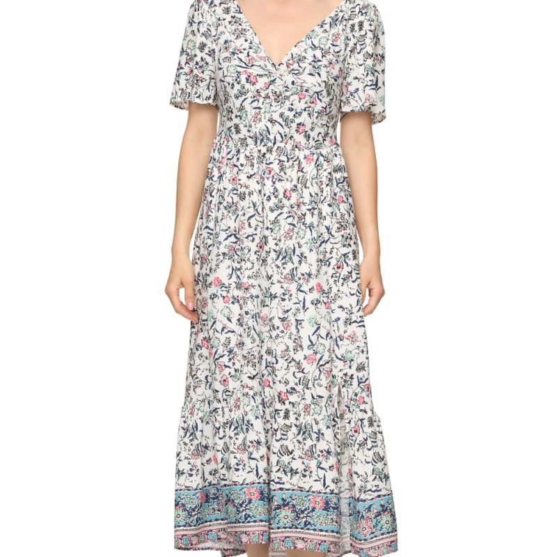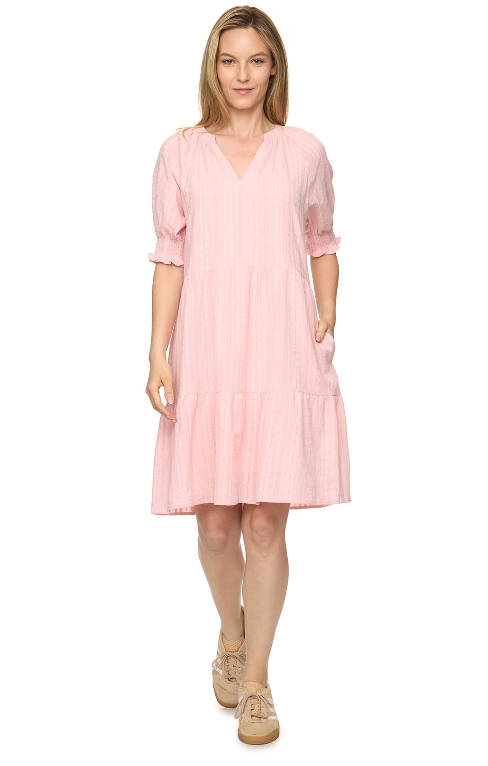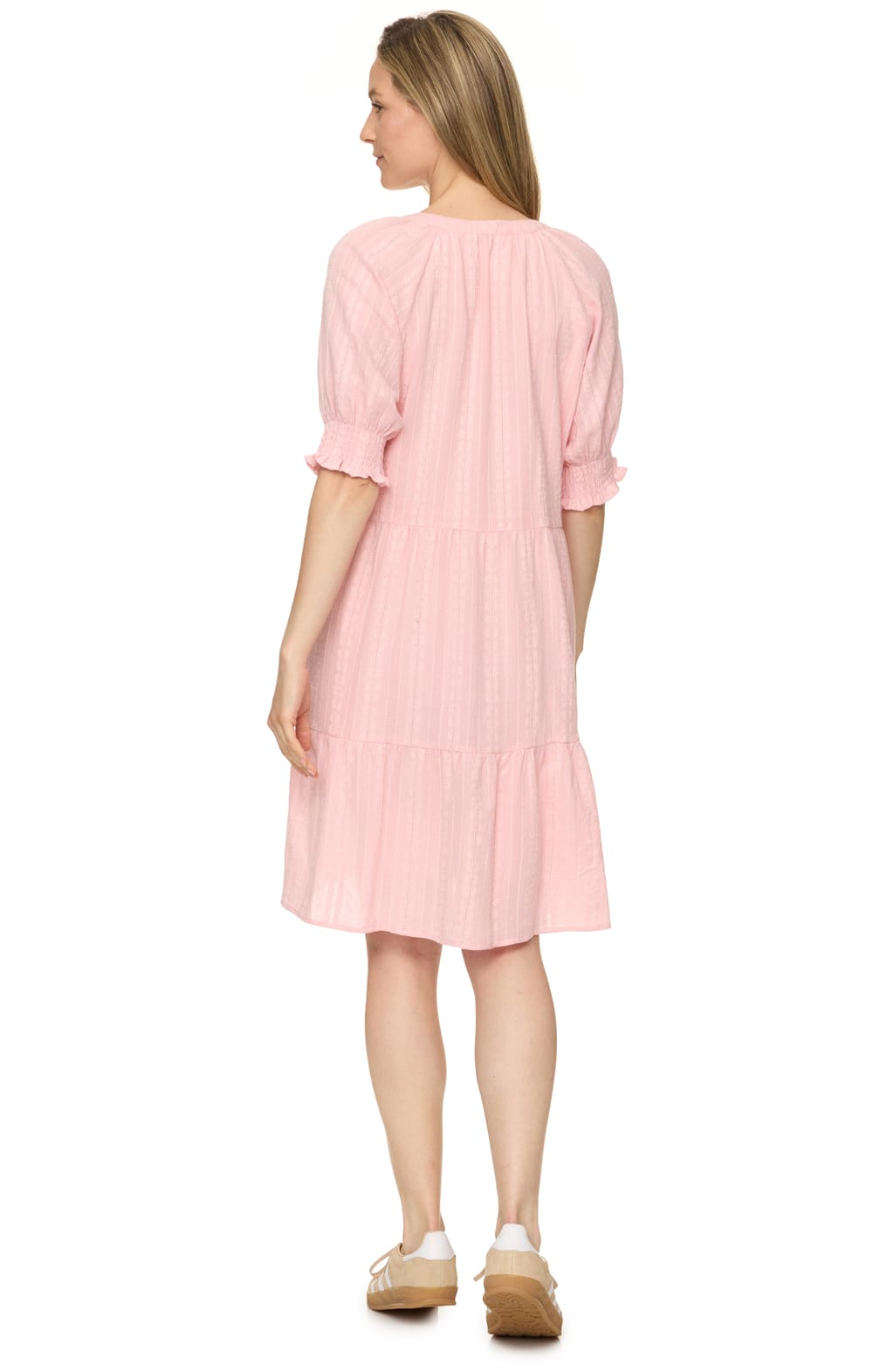 Make spring days even sweeter in our Reba Mini Dress. Made of lightweight, breathable cotton fabric, this tiered shift dress features a flattering v neckline, short puff sleeves with smocked elastic cuffs, and seam pockets to keep everything you need within your reach.