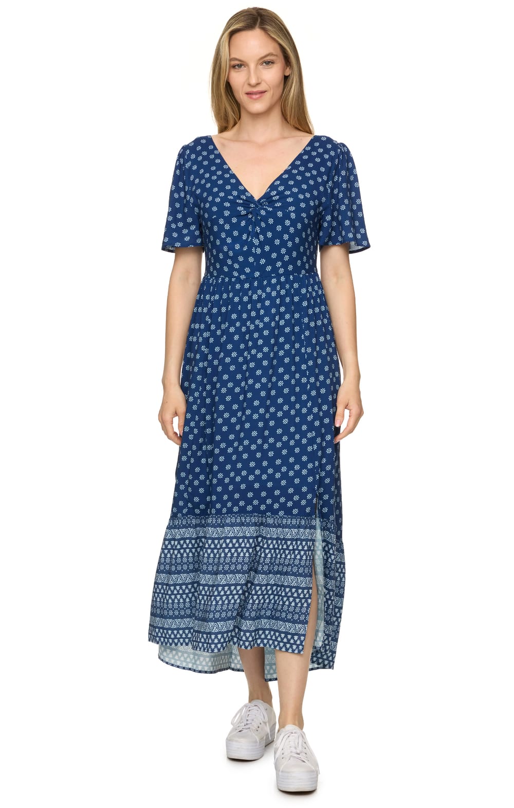Beautiful days deserve beautiful style, like our Rosalind Maxi Dress. Breathable, lightweight fabric with an eye-catching floral print composes this dress with a v-neckline ending in a twist detail, stretchy smocked back bodice, and short flounce sleeves. The tiered maxi skirt features a flirty slit and ends just above the ankles.
