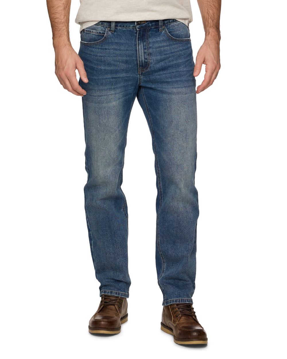 Get premium, casual style and all-day comfort with our Spencer Slim Straight Jean. Made from supremely soft yet durable cotton blend fabric with the perfect amount of move-with-you stretch, these regular-rise tapered jeans are just what your closet needs. Traditional 5-pocket styling; zip-fly front with button closure. Leather logo back patch. Light wash.