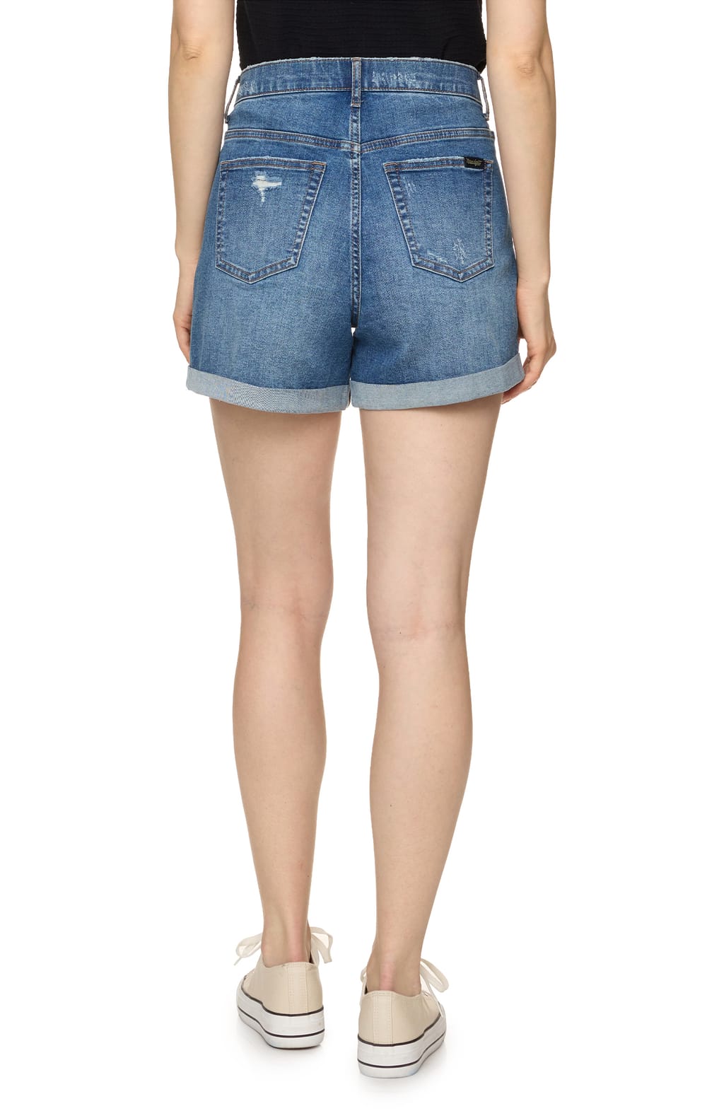 Warm weather is here and so are our Twilight Cuffed Denim Shorts. Sturdy, light wash denim with a hint of stretch shapes, these cute and casual shorts feature a high-rise fit with comfort control to smooth and prevent gapping, belt loops, and five-pocket design. Trendy distressing creates an effortless look, ending in cuffed hems. Button and hidden zip-fly closure.
